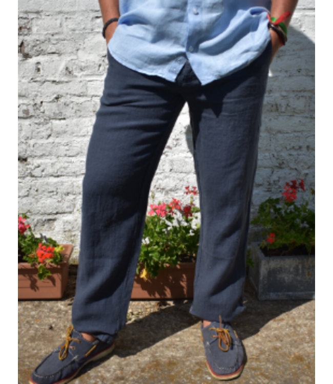 Le grenier du lin Pantalon homme en lin 100% Van bleu marine – Coupe droite, confection européenne