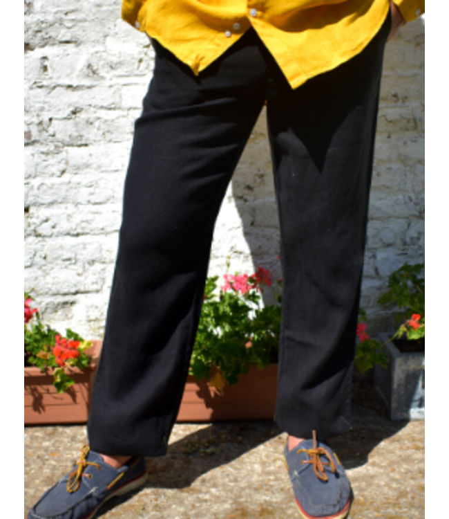 Le noir confère au pantalon une allure sobre et élégante. Intemporel, il permet de composer des tenues plus habillées tout en conservant le confort et la légèreté du lin.