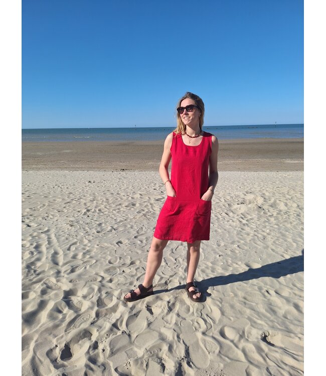 Petite robe pur lin basique, confectionnée en Europe pouvant se porter habillée ou décontractée