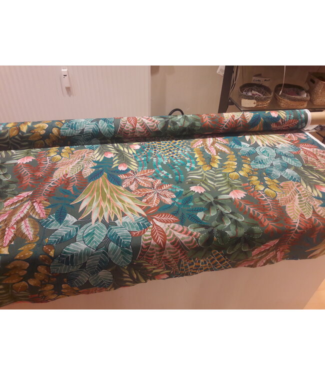 Tissu en lin de qualité européenne imprimé, feuillage, pour ameublement: coussins, rideaux, nappes, chemins de table et toutes confections de loisirs créatifs.